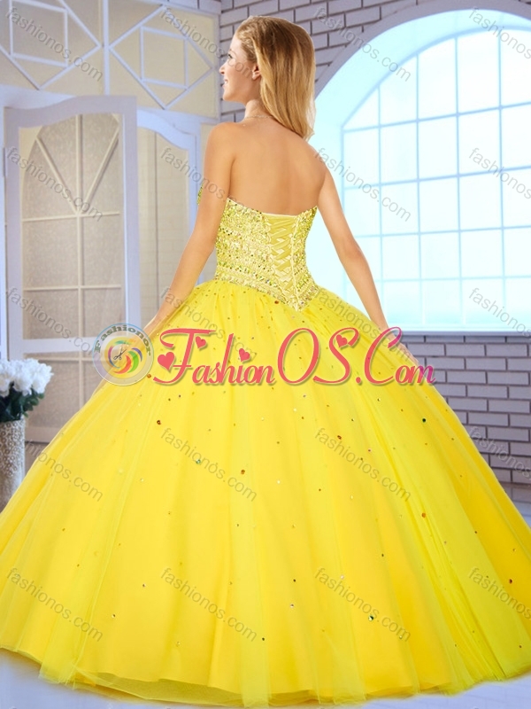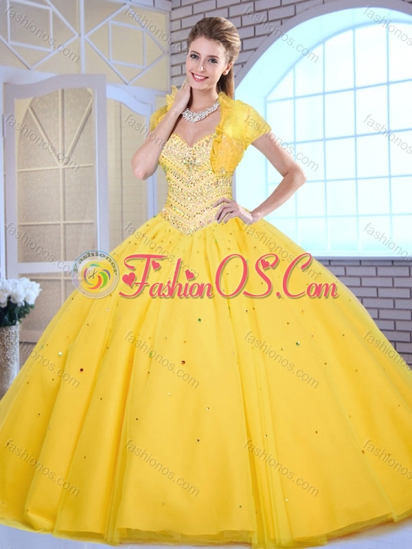 Unique Ball Gown Yellow Sweet 16 Quinceanera Gowns with Beading