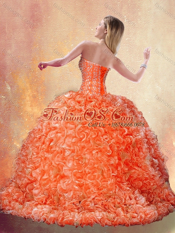 Unique Brush Train Orange Quinceanera Dresses with Beading and Ruffles