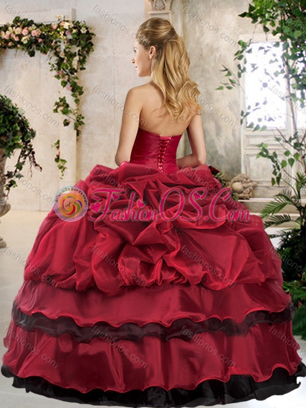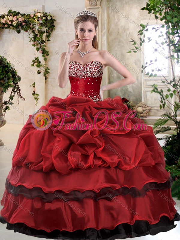 Unique Ball Gown Beading and Pick Ups Sweet 16 Quinceanera Gowns in Wine Red