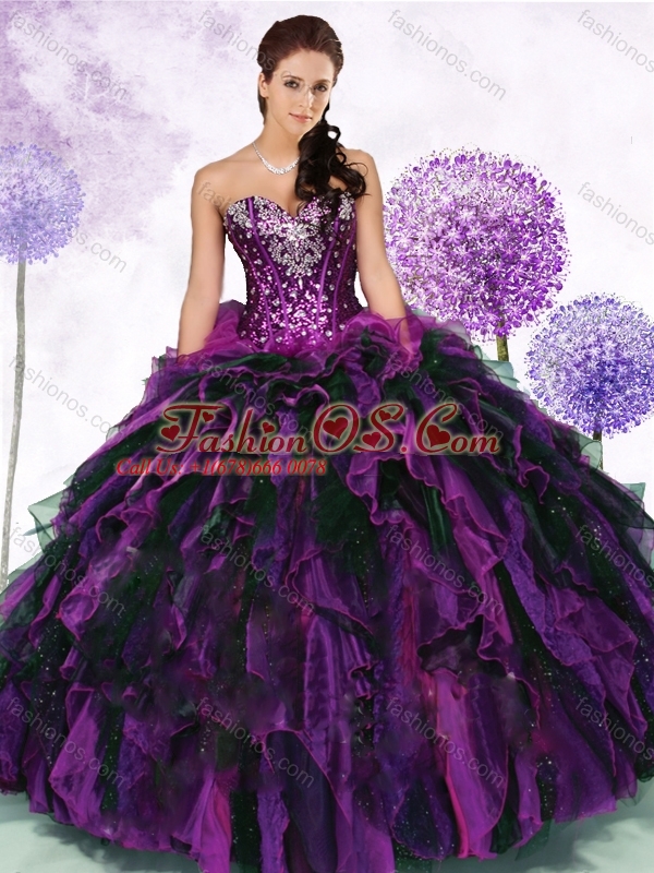 2016 Unique Sweetheart Multi Color Quinceanera Dresses with Ruffles and Sequins