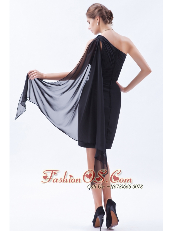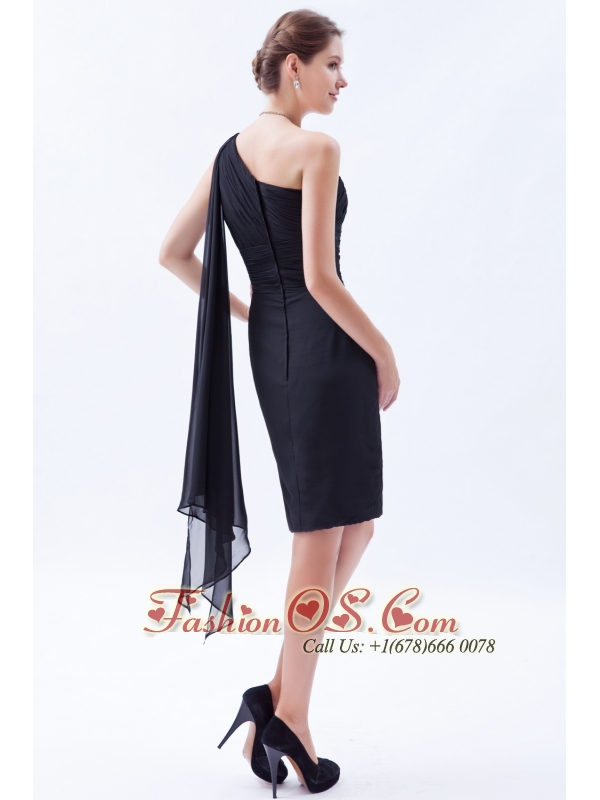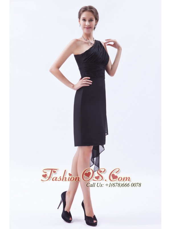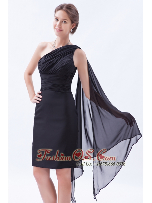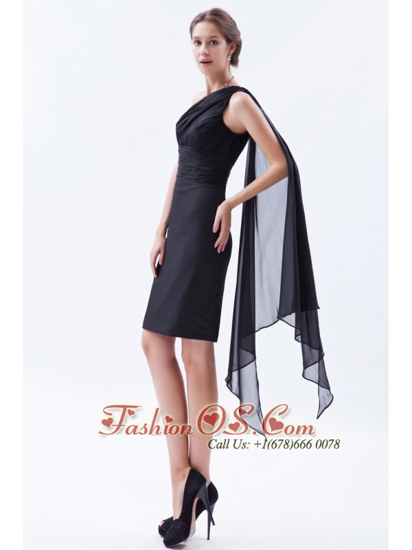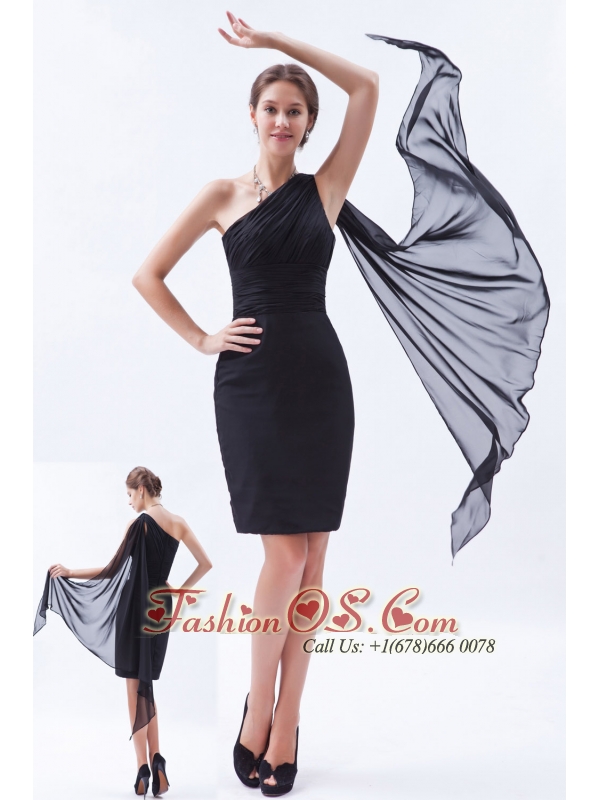 Black Column / Sheath One Shoulder Prom / Evening Dress Chiffon Ruch Watteau Train