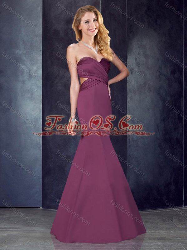 2016 Mermaid Sweetheart Backless Satin Prom Dress in Burgundy