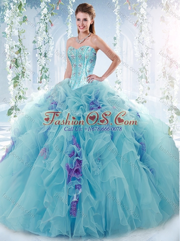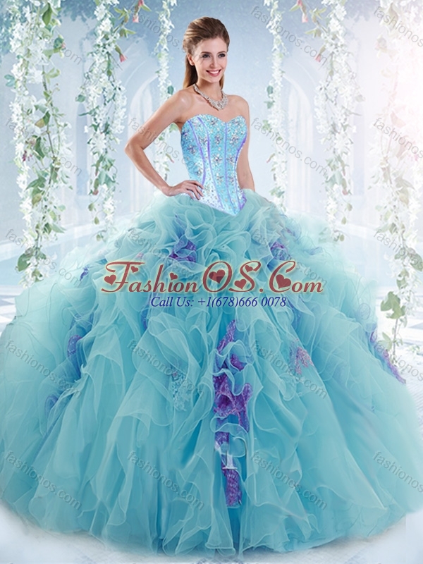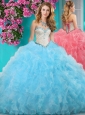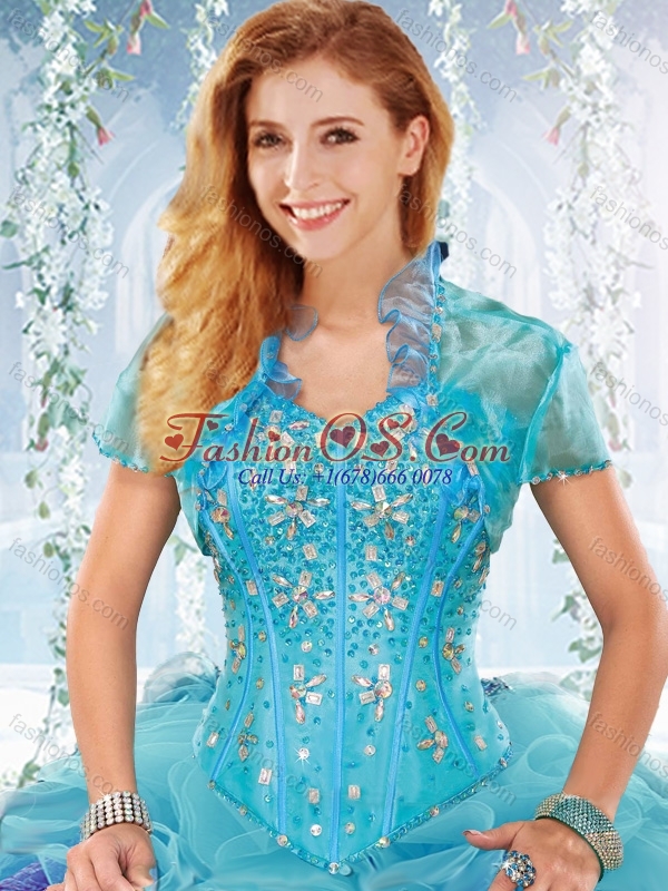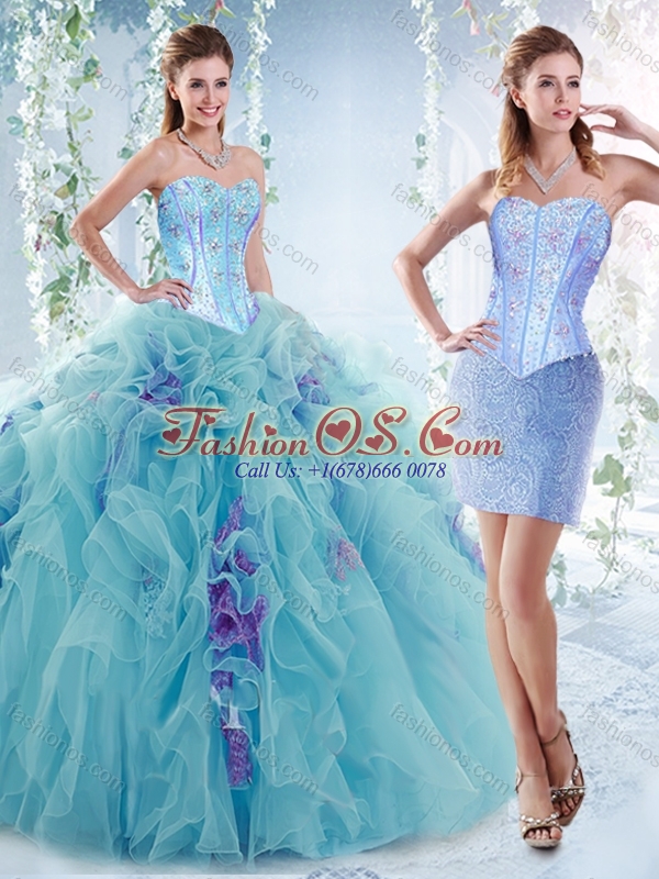 Luxurious Visible Boning Aquamarine Detachable Quinceanera Skirts with Beading