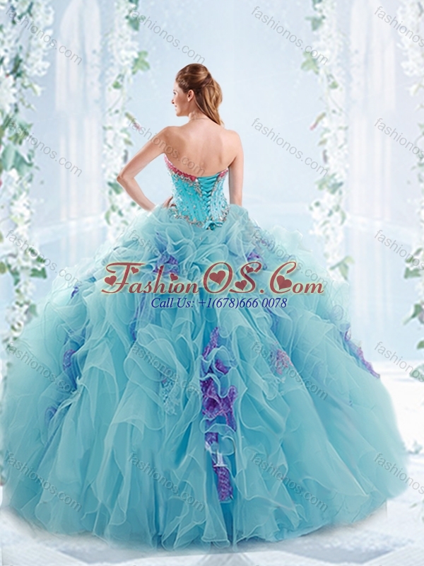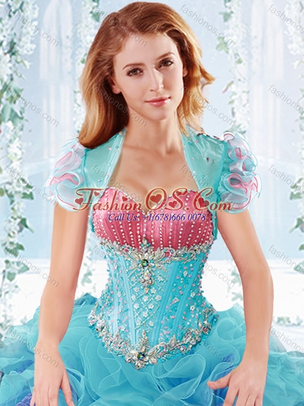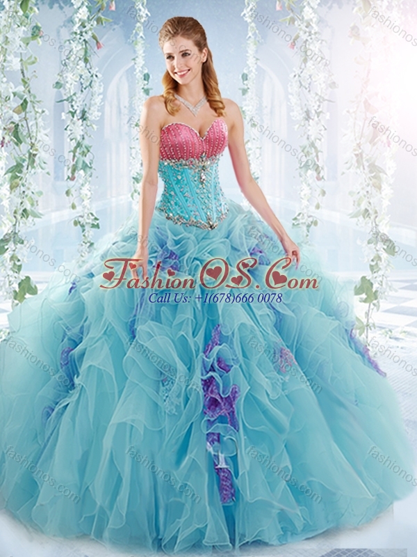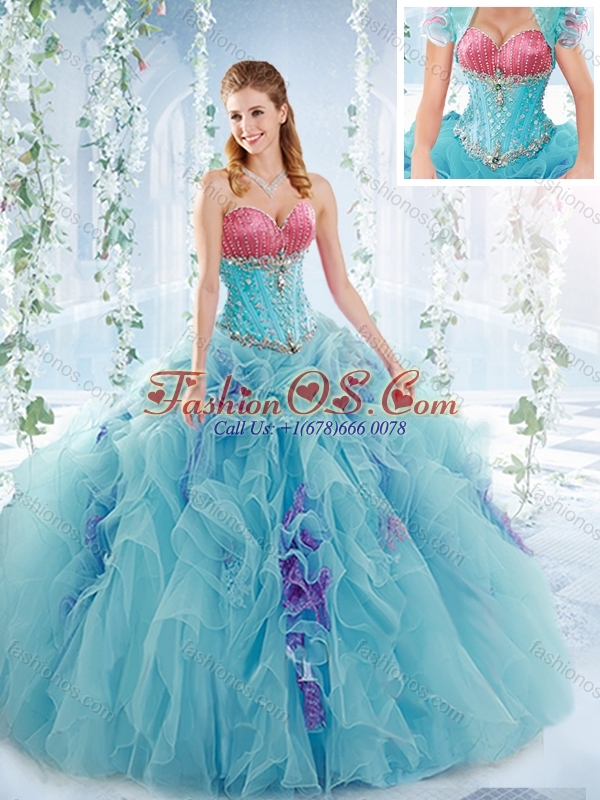 Latest Ruffled and Beaded Detachable Quinceanera Skirts in Aquamarine