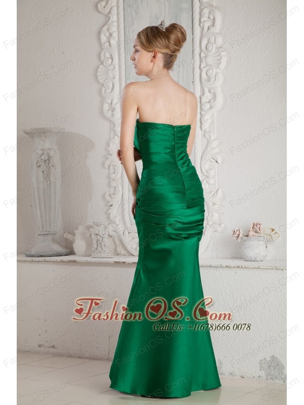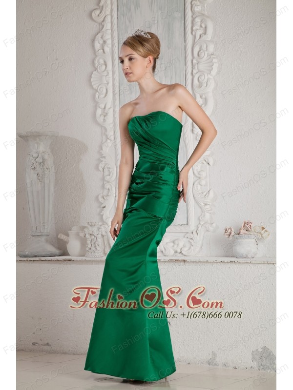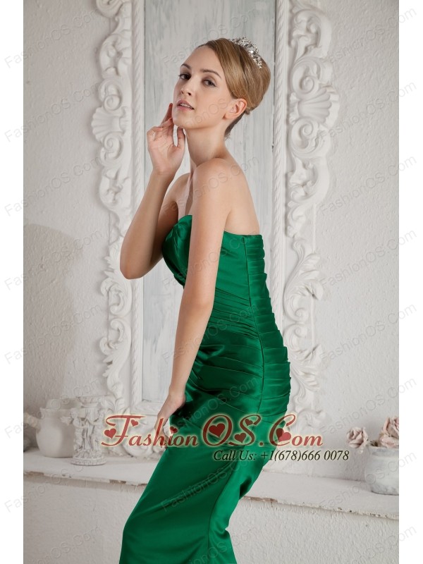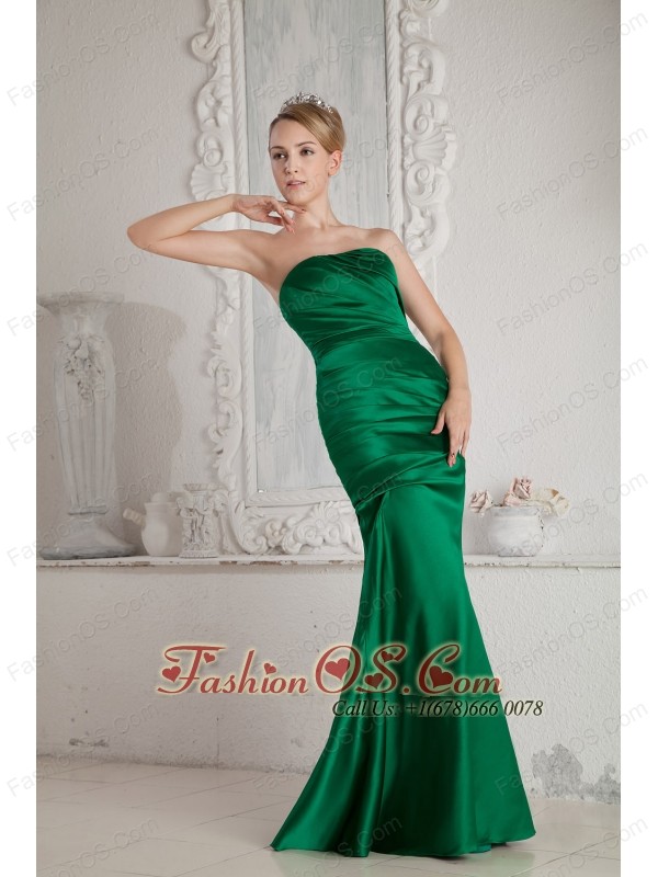 Green Mermaid Strapless Ruch Bridesmaid Dress Floor-length Satin
