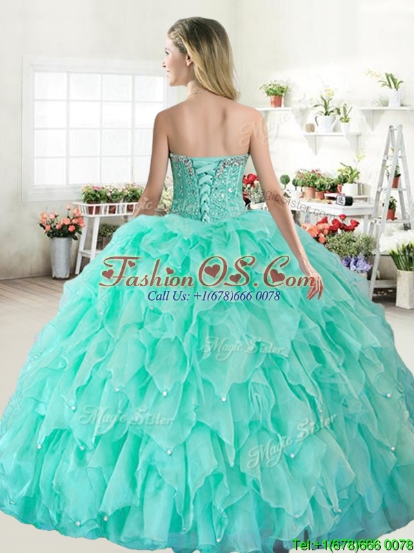 Visible Boning Beaded Bodice and Ruffled Quinceanera Dress in Apple Green