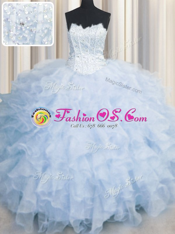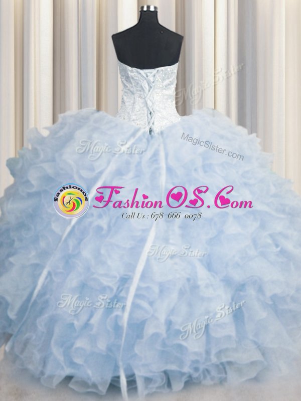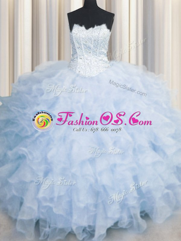 High End Scalloped Sleeveless Lace Up Sweet 16 Quinceanera Dress Light Blue Organza