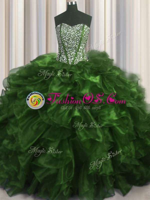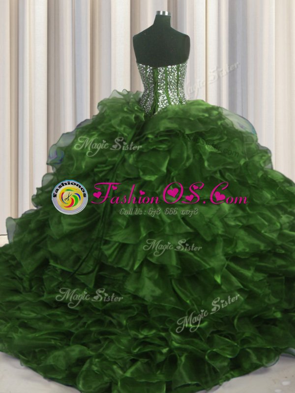 Exquisite Visible Boning With Train Ball Gowns Sleeveless Olive Green Sweet 16 Dress Brush Train Lace Up