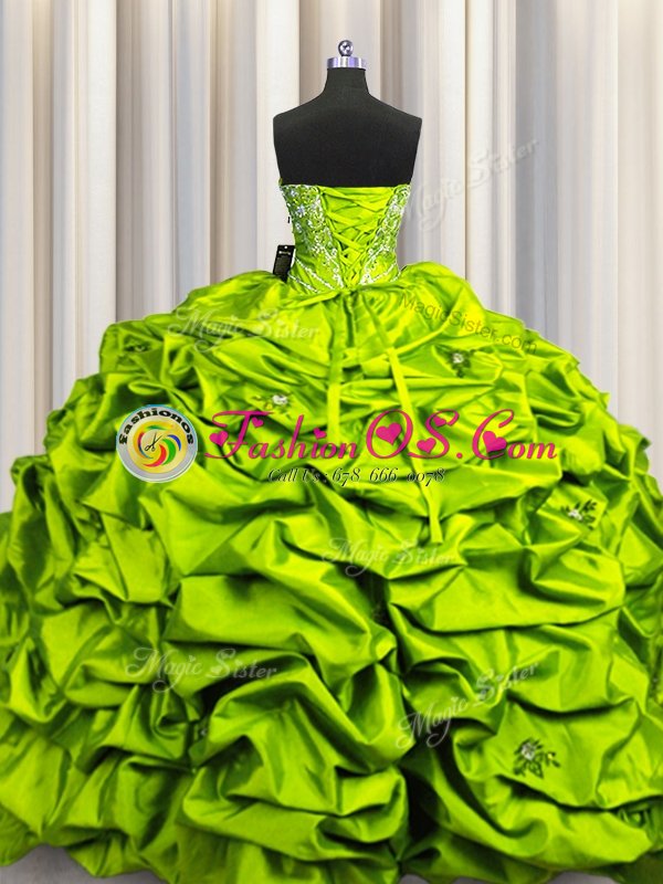 Olive Green Sweet 16 Quinceanera Dress Military Ball and Sweet 16 and Quinceanera and For with Beading and Embroidery and Ruffles and Sequins and Pick Ups Sweetheart Sleeveless Lace Up