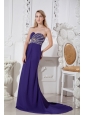A-line silhouette with ruching and beading accent the feminine beauty. Beading was adorned on the straps as well as bust. Soft chiffon dress will flying with wind which is so romantic. The back of this elegant prom dress has a zipper closure and the skirt is complete with a brush train. Wearing this dress and you surely will be the unique one in your party.