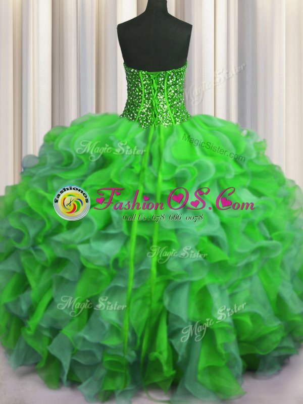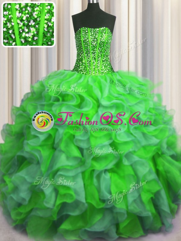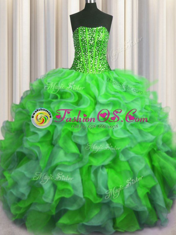 Most Popular Visible Boning Bling-bling Strapless Sleeveless Lace Up Quinceanera Dresses Multi-color Organza
