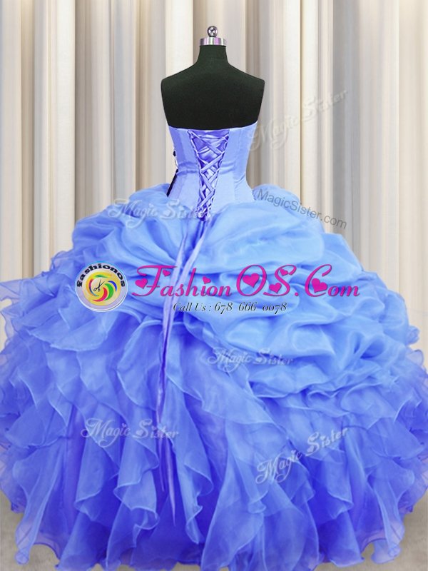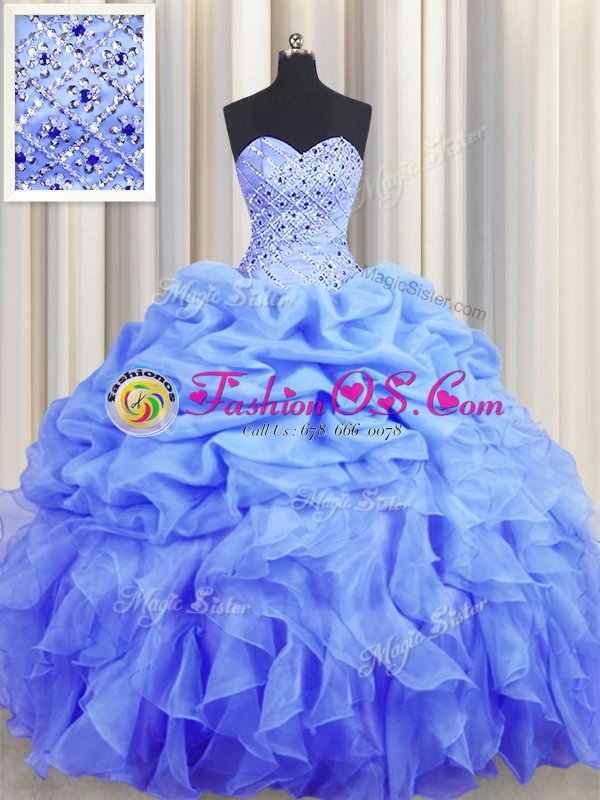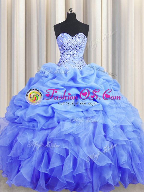 Perfect Blue Lace Up Sweetheart Beading and Ruffles and Pick Ups Sweet 16 Dresses Organza Sleeveless