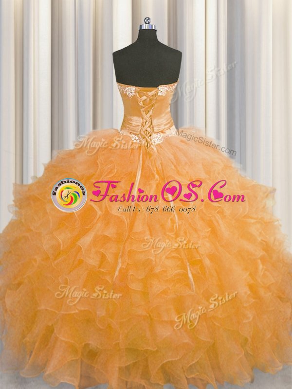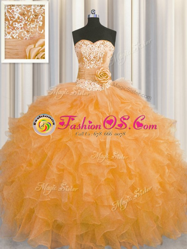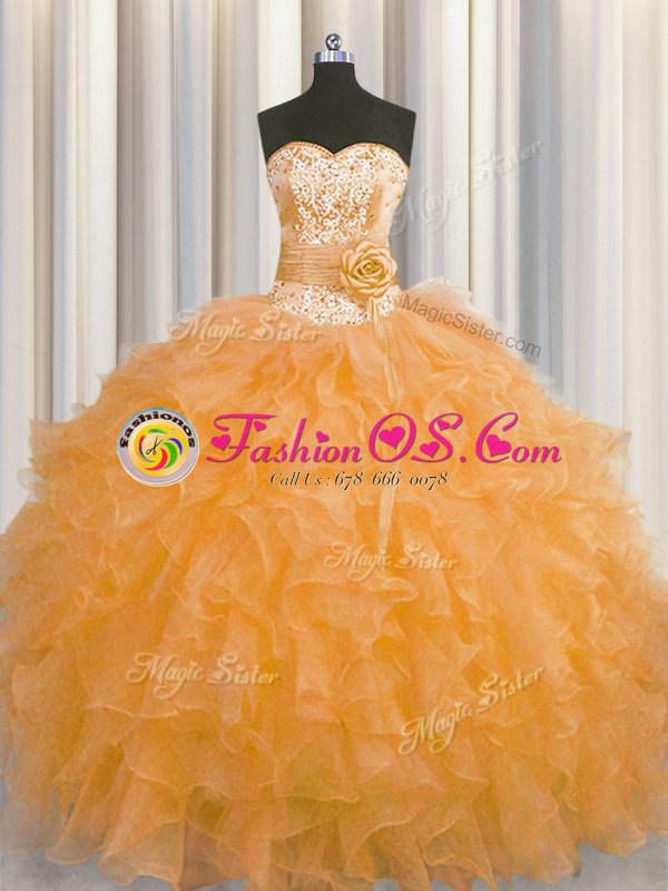 Handcrafted Flower Ball Gowns 15 Quinceanera Dress Orange Sweetheart Organza Sleeveless Floor Length Lace Up