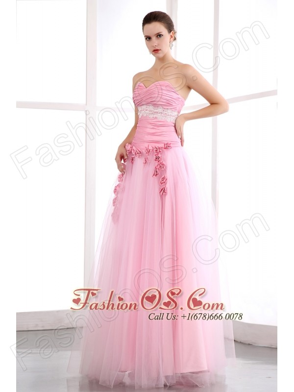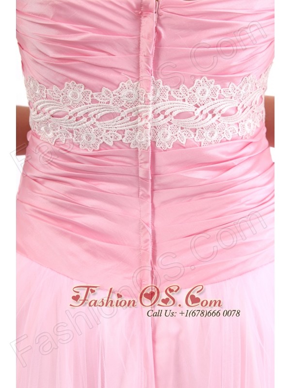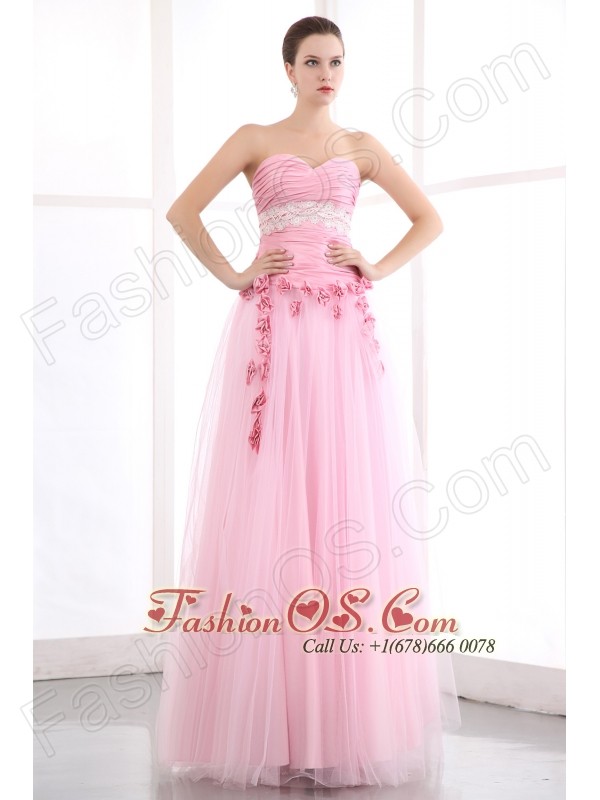 Pink Sweetheart Taffeta and Tulle Prom Dress with Appliques