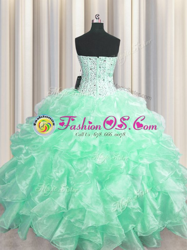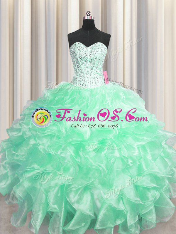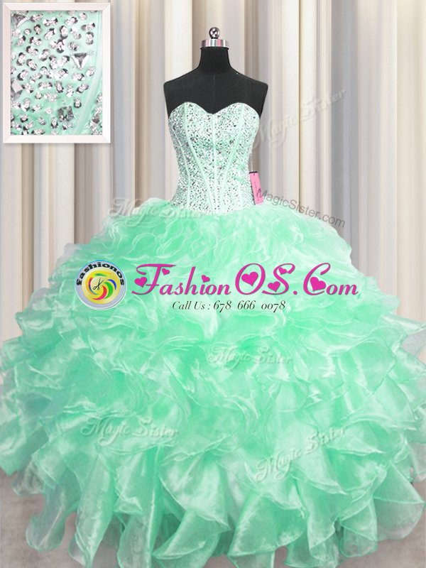 Glorious Visible Boning Apple Green Zipper Sweetheart Beading and Ruffles Sweet 16 Dresses Organza Sleeveless