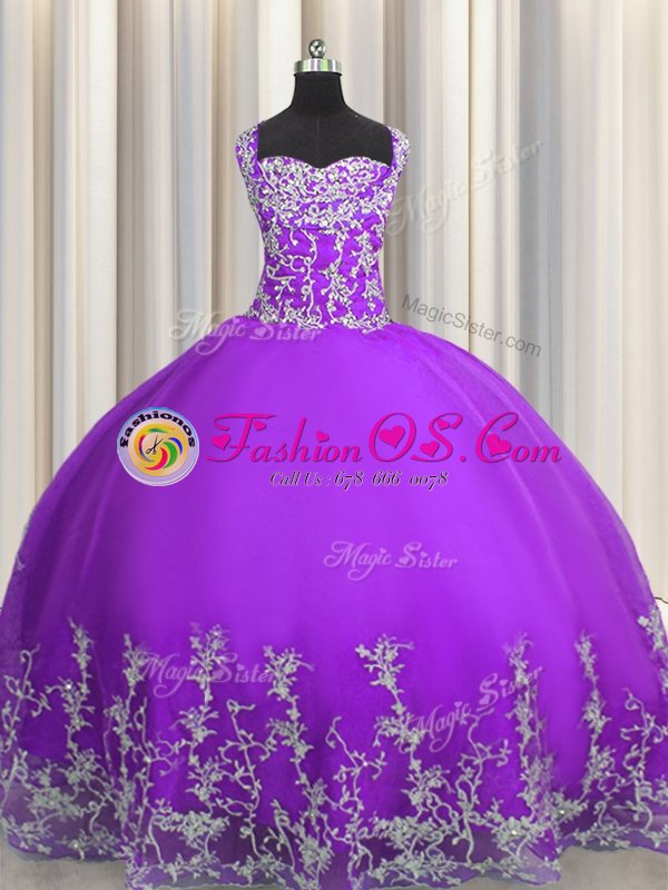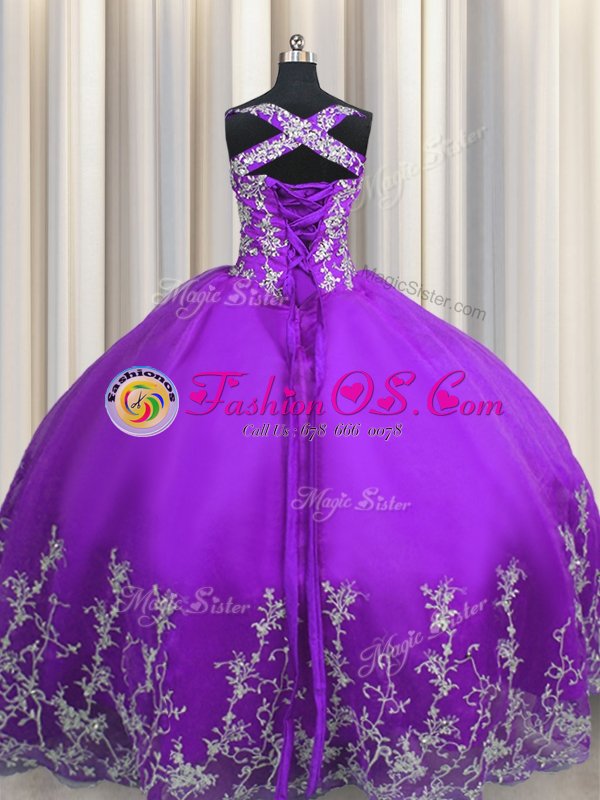 Beading and Appliques Quinceanera Dresses Eggplant Purple Lace Up Sleeveless Floor Length