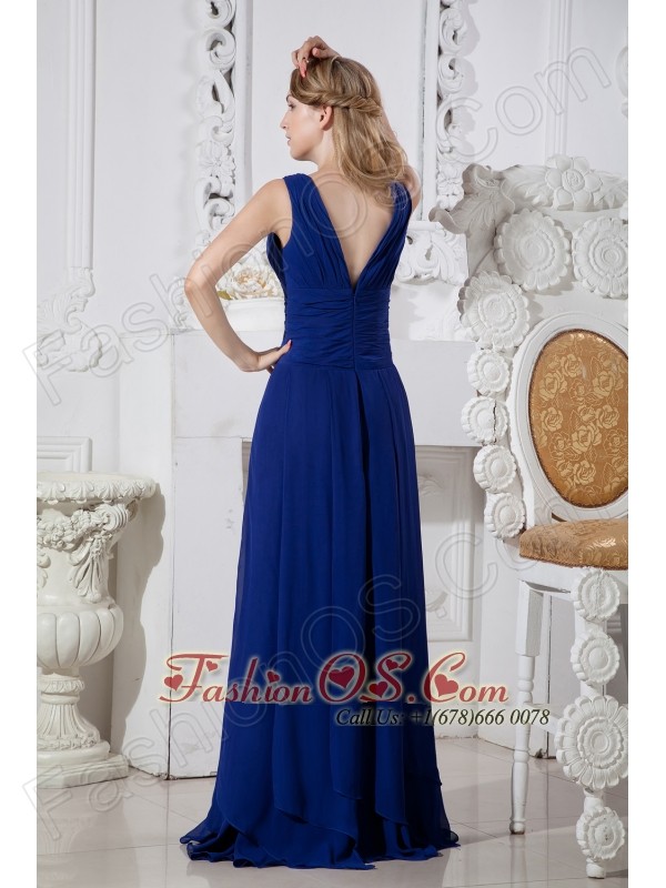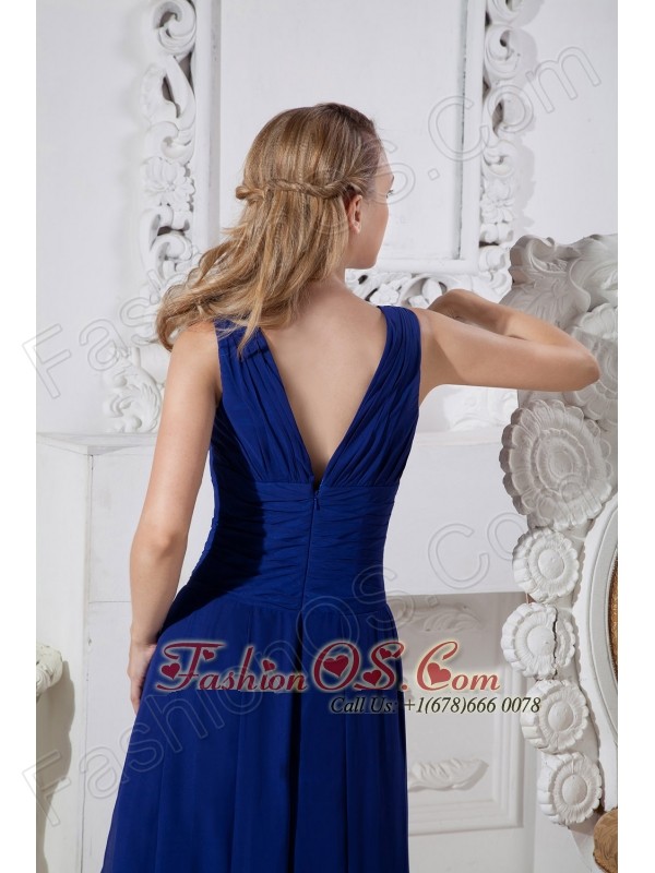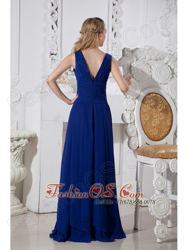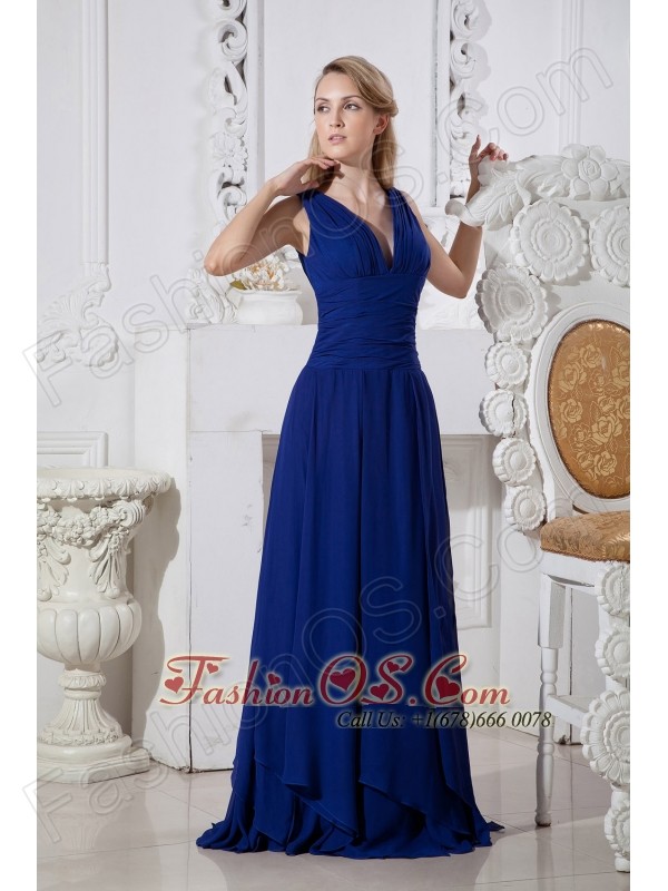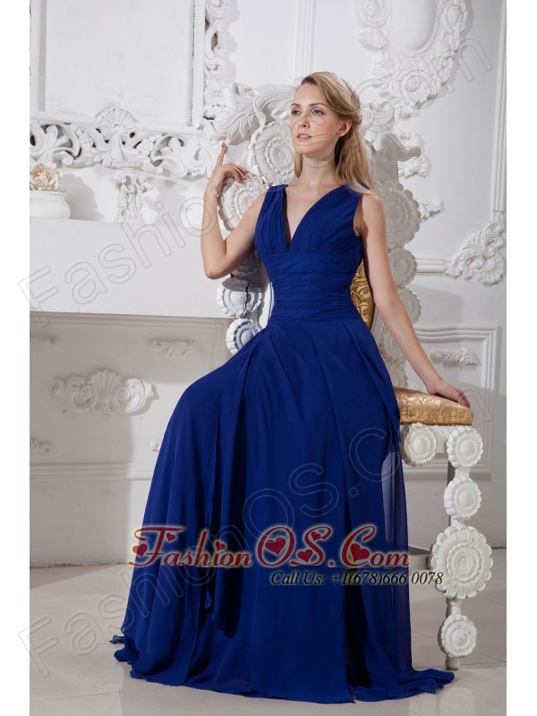 Royal Blue Empire V-neck Prom / Evening Dress Brush Train Chiffon