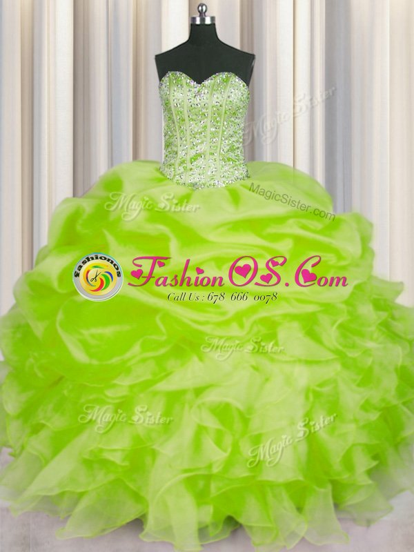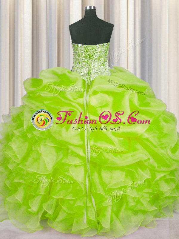 Yellow Green Organza Lace Up Sweet 16 Dresses Sleeveless Floor Length Beading and Ruffles and Pick Ups