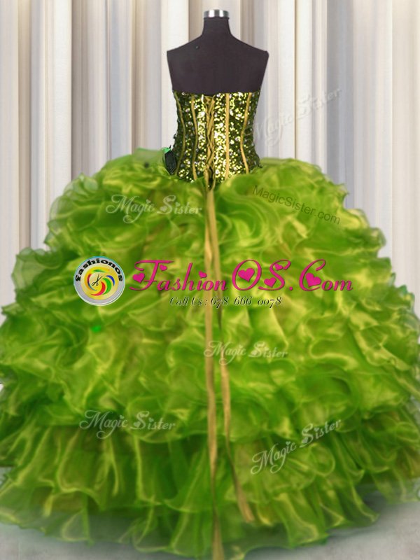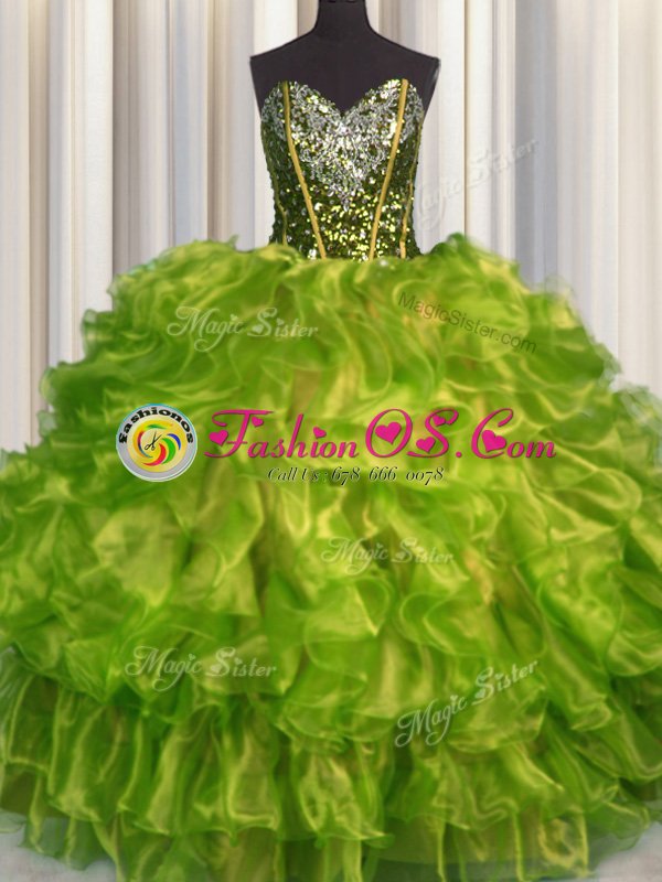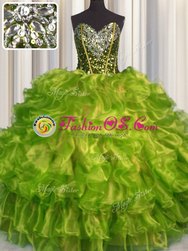 Fashionable Olive Green Quinceanera Gowns Military Ball and Sweet 16 and Quinceanera and For with Beading and Ruffles Sweetheart Sleeveless Lace Up