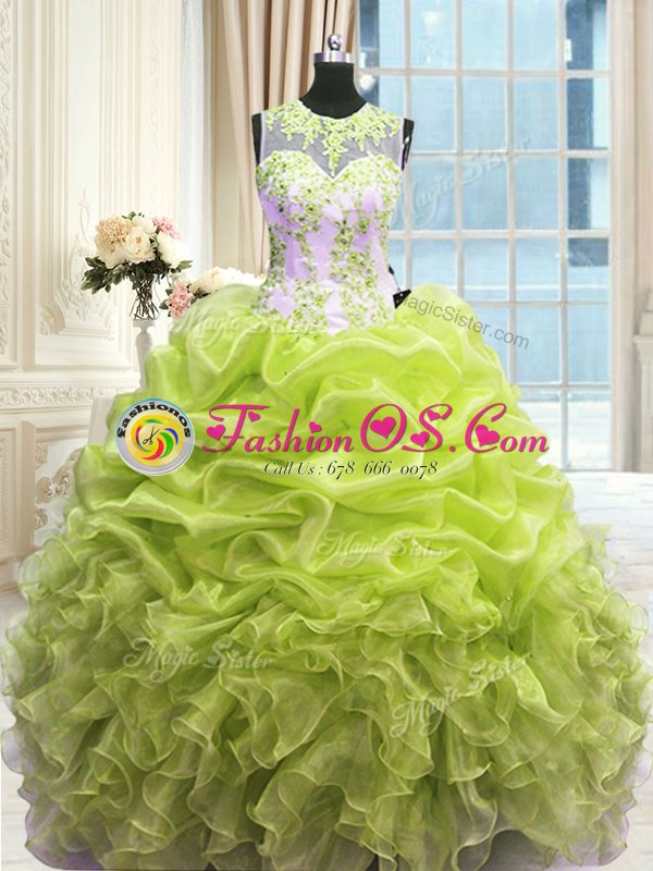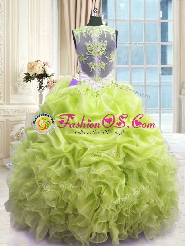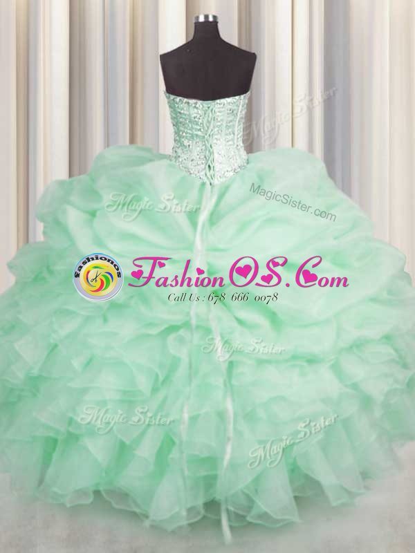 Pretty Sweetheart Sleeveless Organza 15 Quinceanera Dress Beading and Ruffles Lace Up