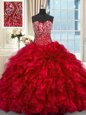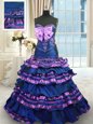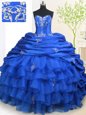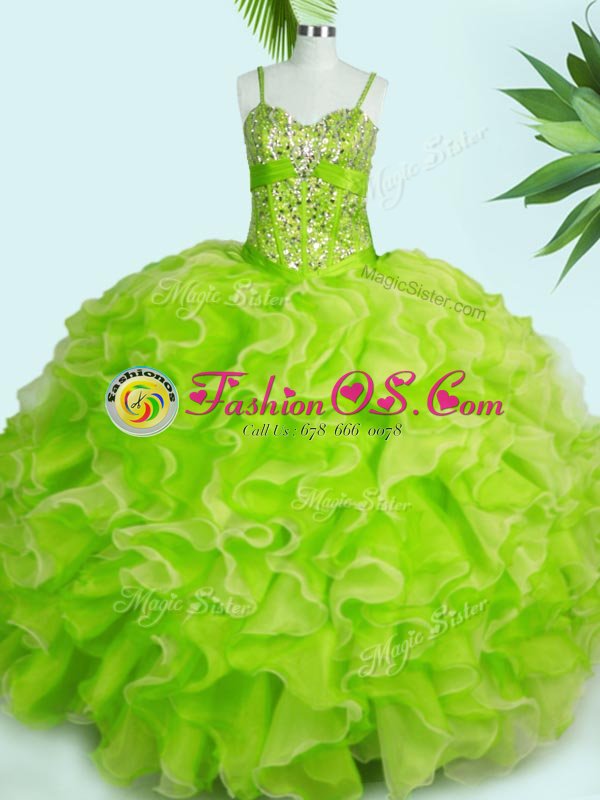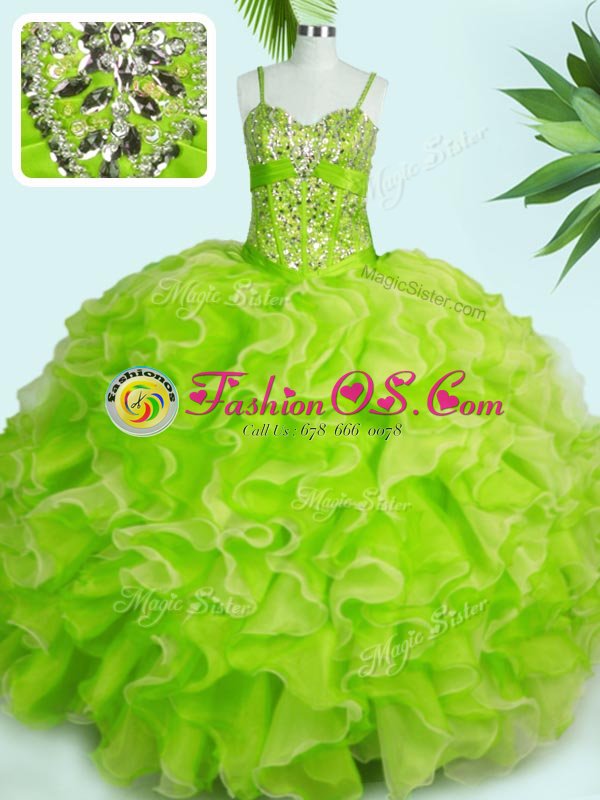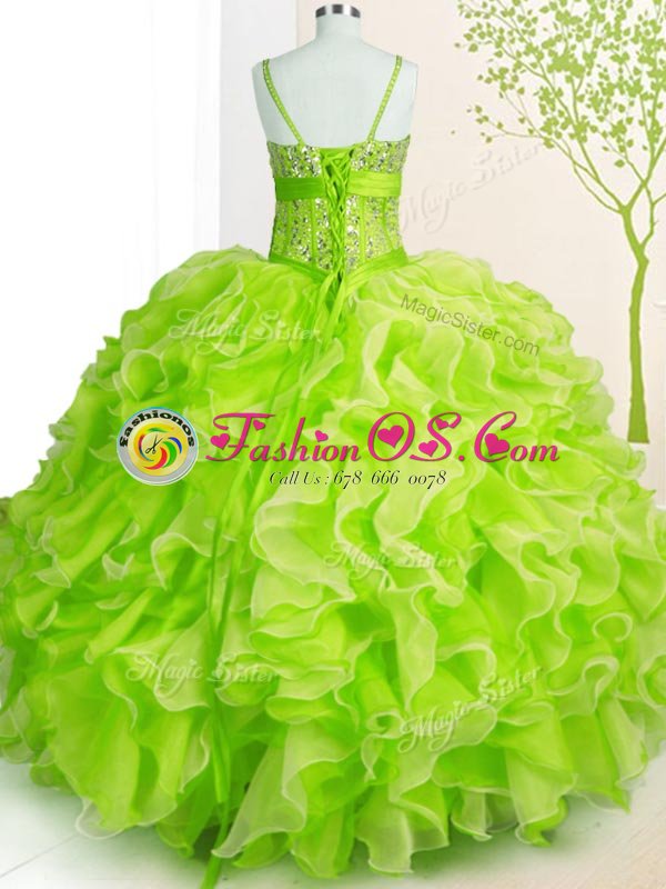 Organza Sleeveless Floor Length Ball Gown Prom Dress and Beading and Ruffles