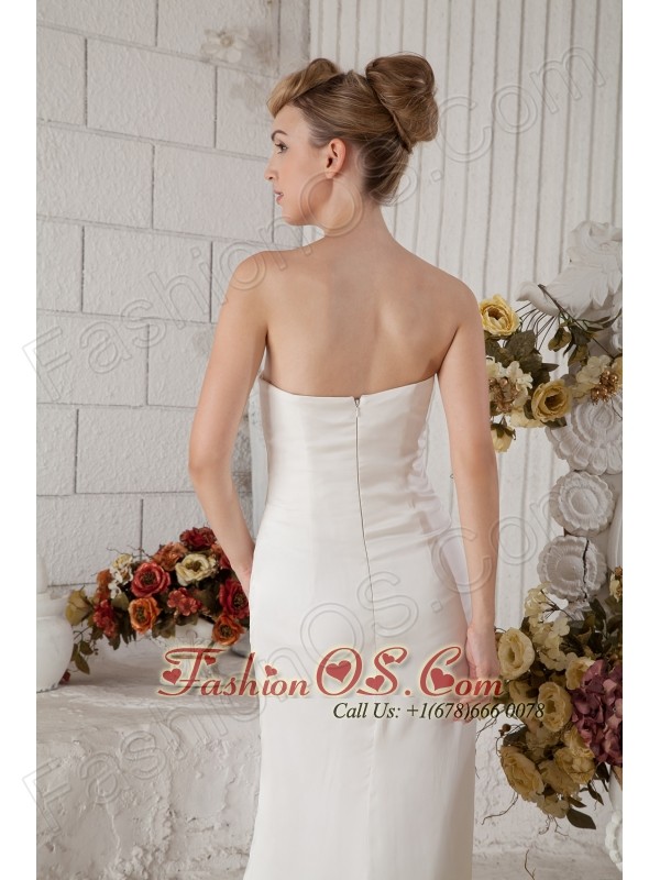 Sheath-style dresses are the way to go if you are looking for a style to show off your curves. This one is a great example of what we mean. It features a strapless neckline delicate ruching on the fitted bodice, which undoubtedly adds the charming and sexy feeling of this dress. The gorgeous chiffon skirt is the classic symbol of royal and romantic. Zipper up back completes the perfect look. You will be the lightspot on the big day!