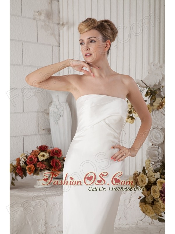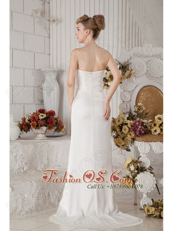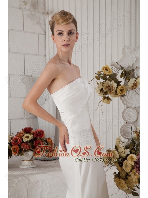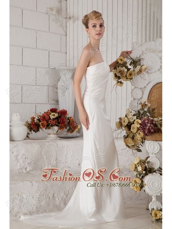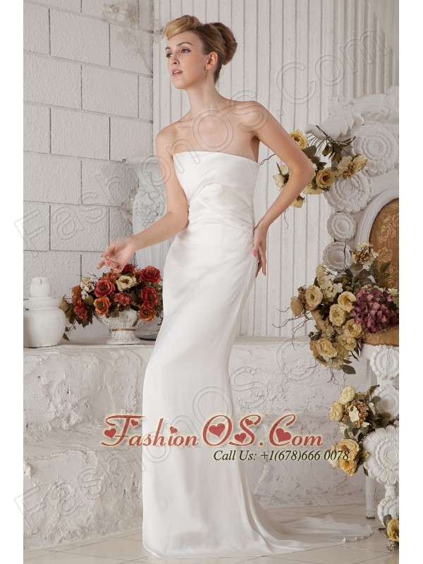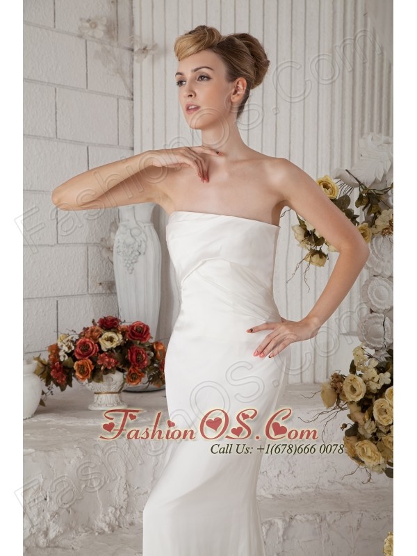 Popular Column Strapless Ruch Prom Dress Brush Train Chiffon