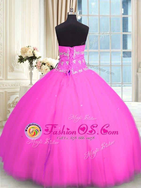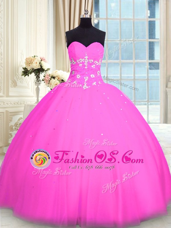 Beautiful Pink Vestidos de Quinceanera Military Ball and Sweet 16 and Quinceanera and For with Appliques Sweetheart Sleeveless Lace Up