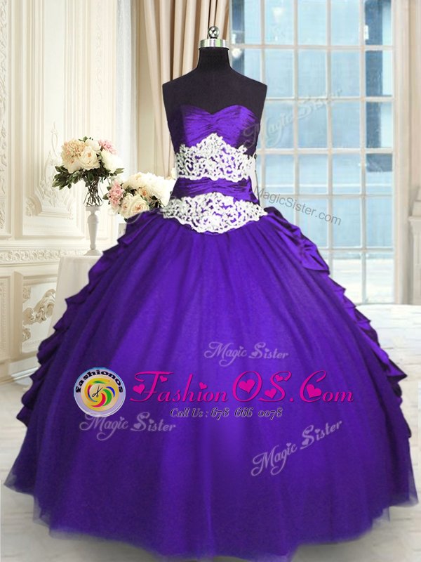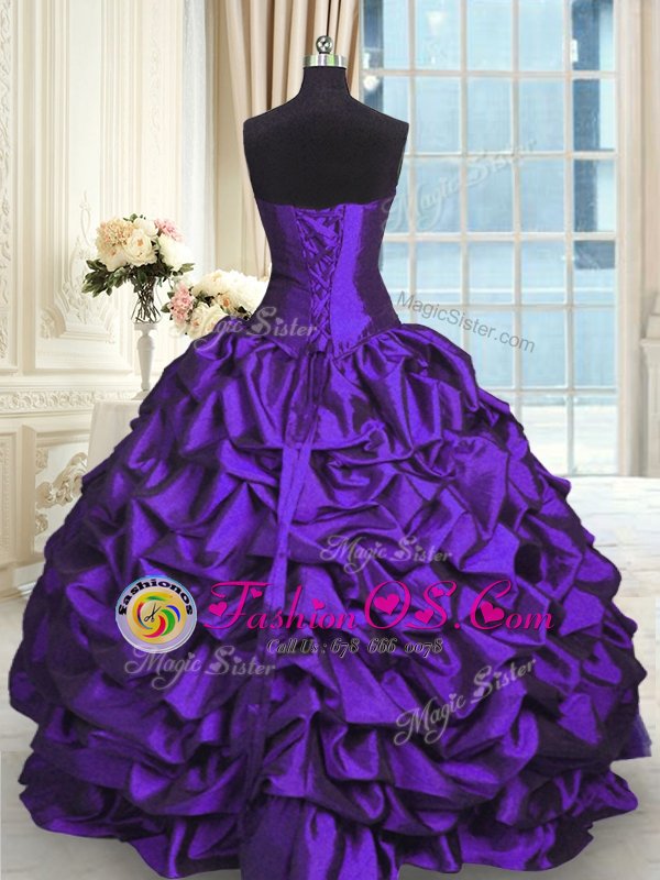Pick Ups Sweetheart Sleeveless Lace Up Sweet 16 Dress Purple Taffeta and Tulle