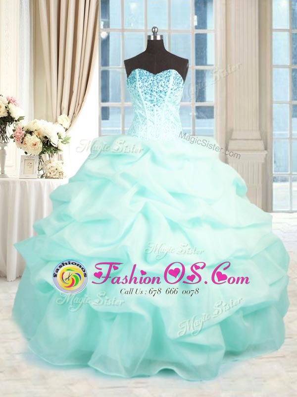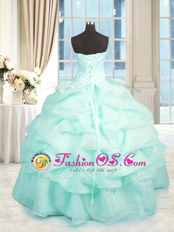 Exceptional Aqua Blue Sleeveless Organza Lace Up Quinceanera Dress for Military Ball and Sweet 16 and Quinceanera