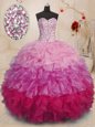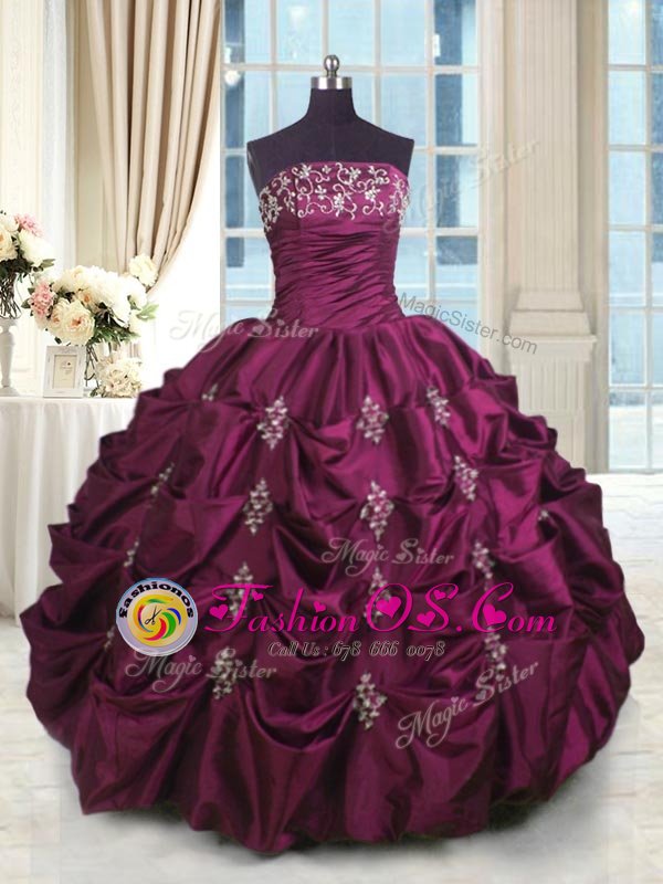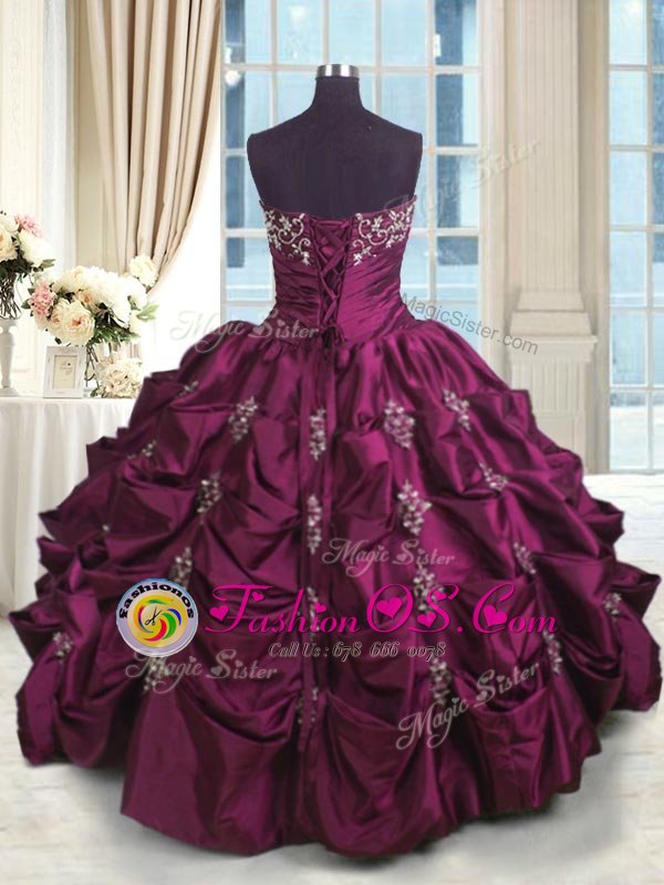 Romantic Pick Ups Burgundy Sleeveless Taffeta Lace Up Quinceanera Dress for Military Ball and Sweet 16 and Quinceanera