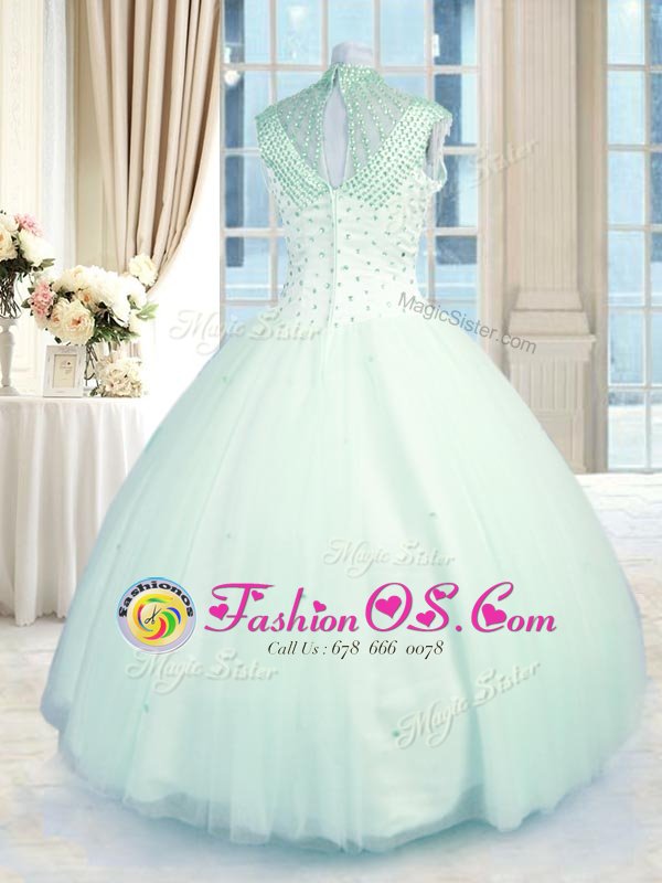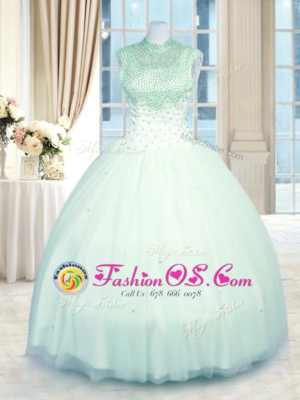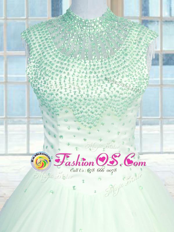 Hot Sale Apple Green Quinceanera Dresses Military Ball and Sweet 16 and Quinceanera and For with Beading High-neck Sleeveless Zipper