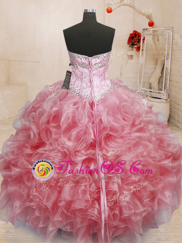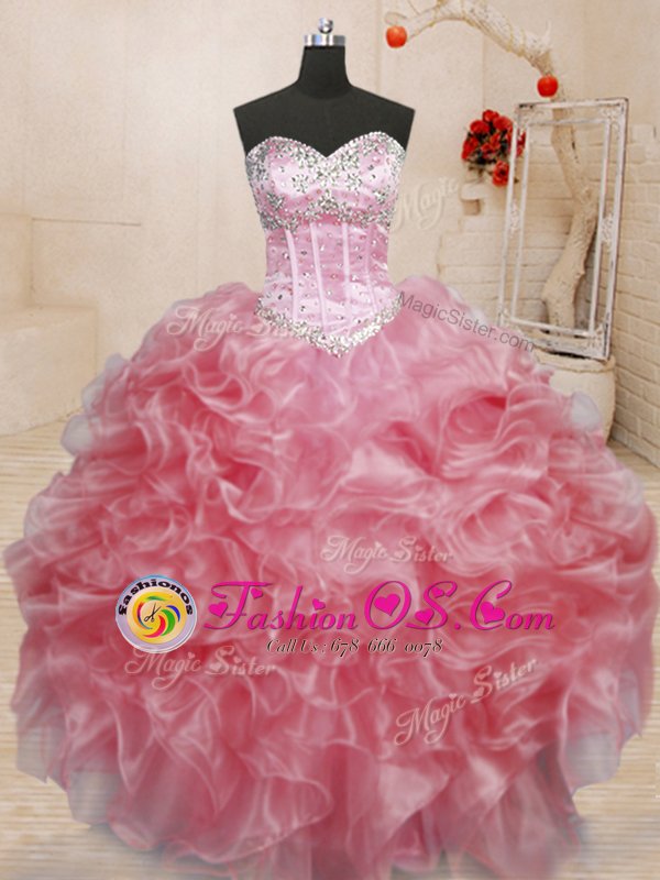 Rose Pink Sweetheart Zipper Beading and Ruffles Sweet 16 Quinceanera Dress Sleeveless