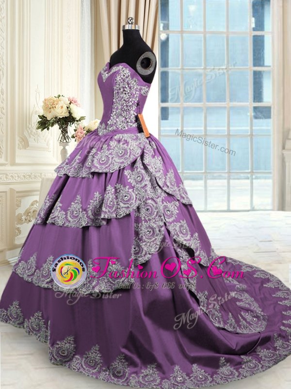 Taffeta Sleeveless With Train Quinceanera Dresses and Beading and Appliques and Ruffled Layers