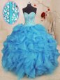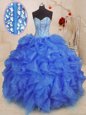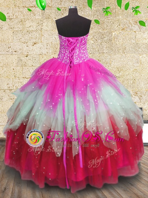 Multi-color Tulle Lace Up Vestidos de Quinceanera Sleeveless Floor Length Beading and Ruffles and Ruffled Layers