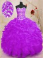 Appliques and Ruching Sweet 16 Dress Purple Lace Up Sleeveless Floor Length