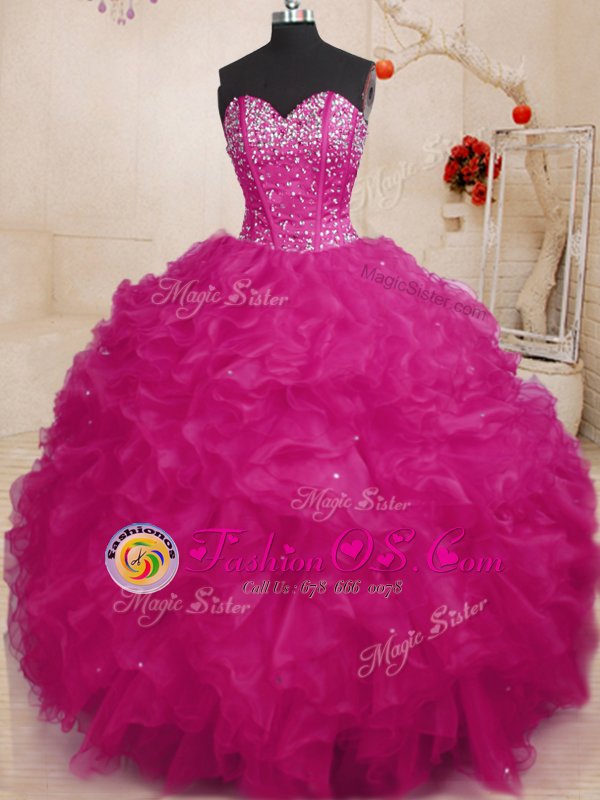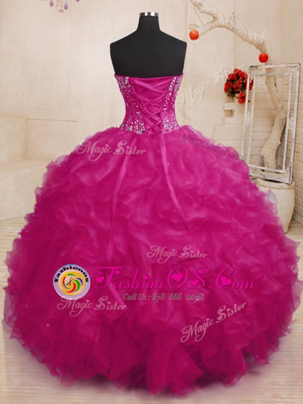 Floor Length Lace Up Quinceanera Dresses Pink and In for Military Ball and Sweet 16 and Quinceanera with Beading and Ruffles
