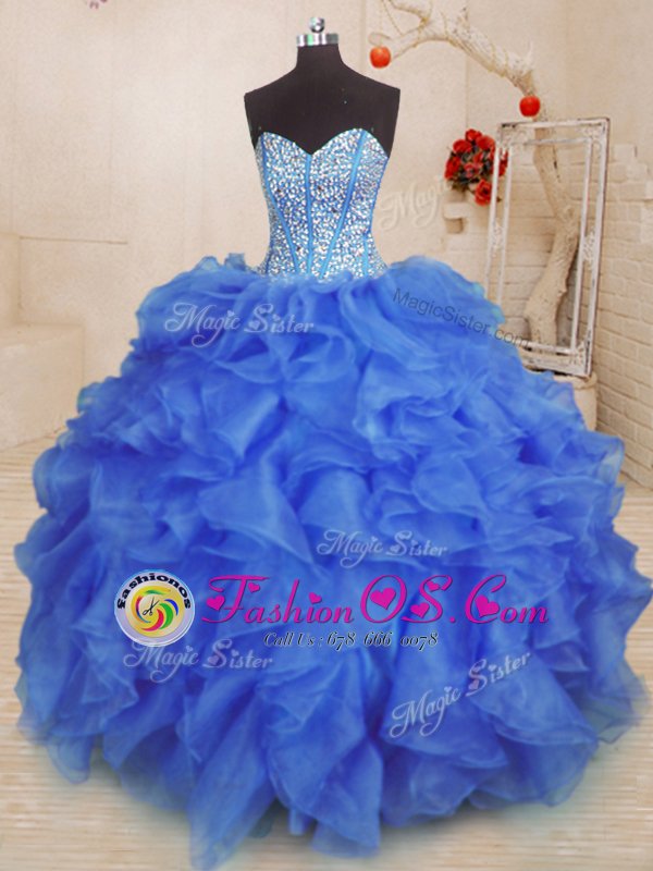 Floor Length Royal Blue Sweet 16 Quinceanera Dress Sweetheart Sleeveless Lace Up