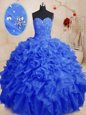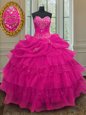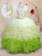 Trendy Fuchsia Tulle Lace Up 15th Birthday Dress Sleeveless Floor Length Beading and Embroidery