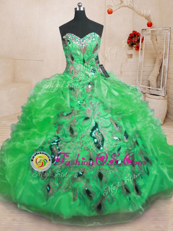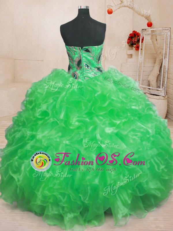 Attractive Ball Gowns Ball Gown Prom Dress Green Sweetheart Organza Sleeveless Floor Length Zipper