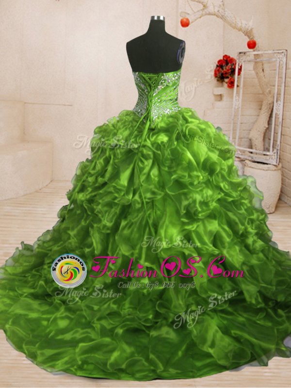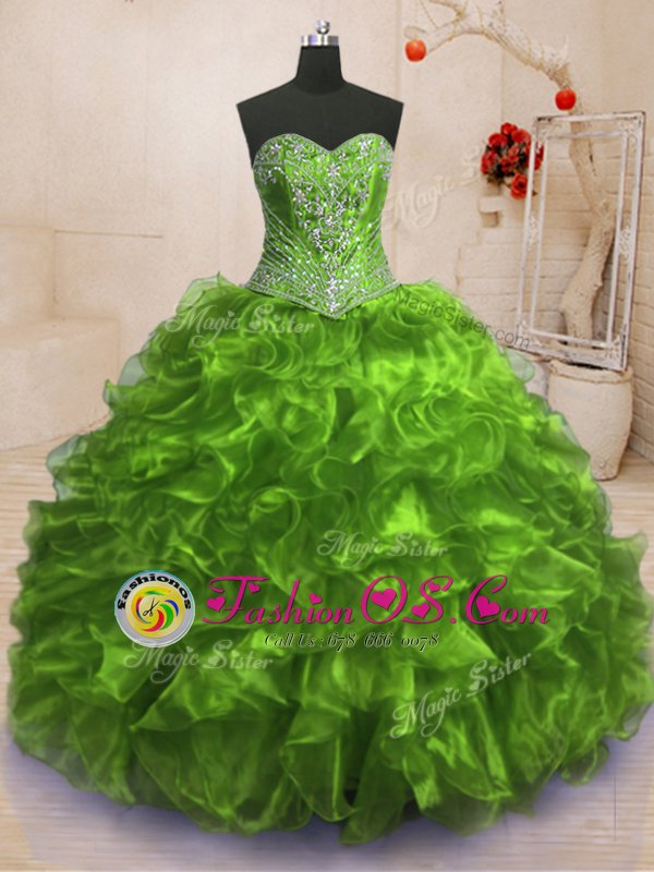 Sleeveless Lace Up Floor Length Beading and Ruffles 15th Birthday Dress