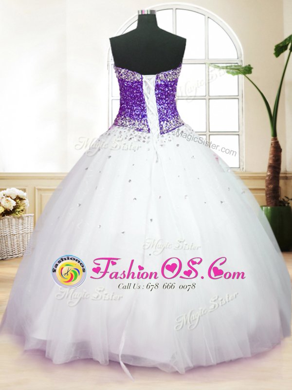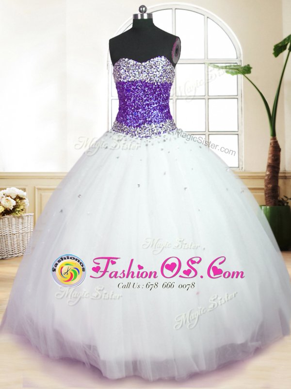 White And Purple Quinceanera Gown Military Ball and Sweet 16 and Quinceanera and For with Beading Sweetheart Sleeveless Lace Up