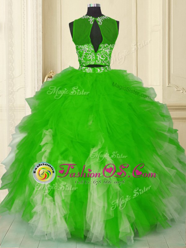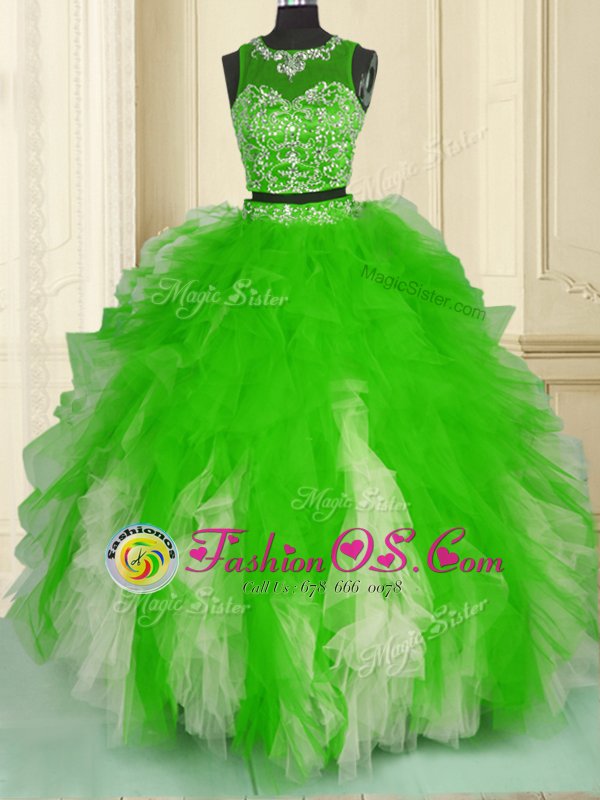 Sexy Tulle Scoop Sleeveless Zipper Beading and Ruffles Sweet 16 Quinceanera Dress in