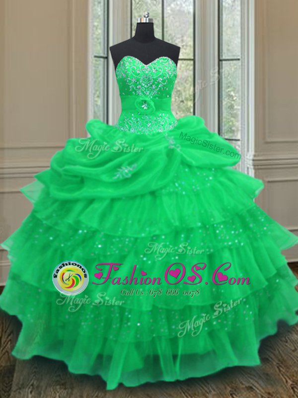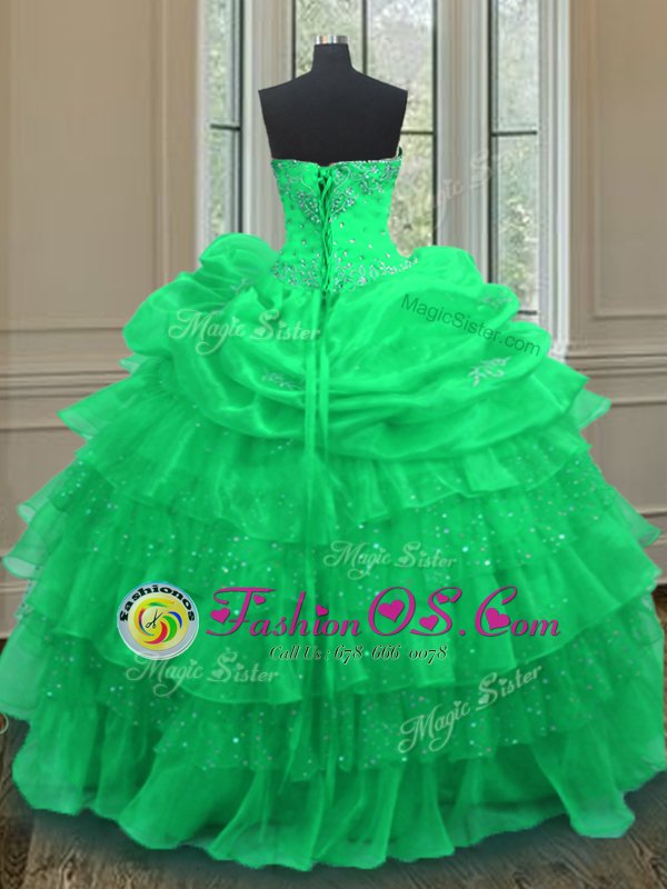 Halter Top Sleeveless Organza Quinceanera Gown Beading and Ruffled Layers and Pick Ups Lace Up