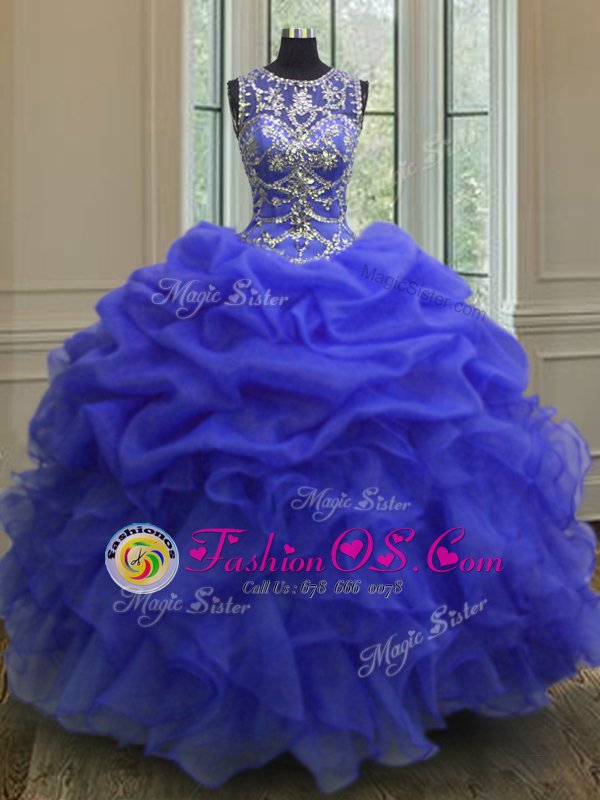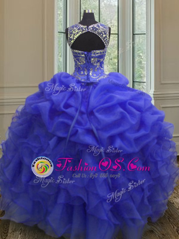 Green Sleeveless Organza Lace Up Quince Ball Gowns for Military Ball and Sweet 16 and Quinceanera