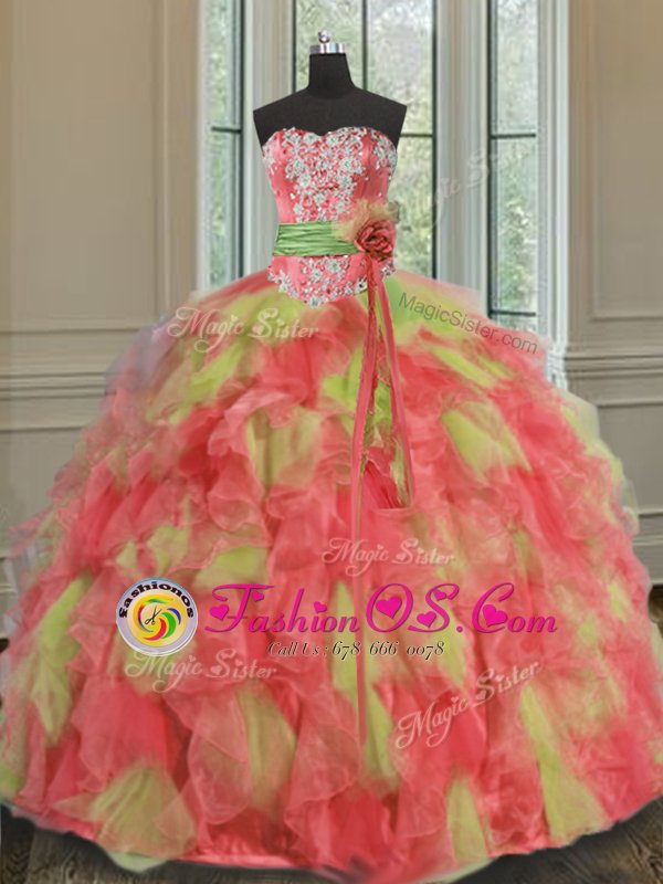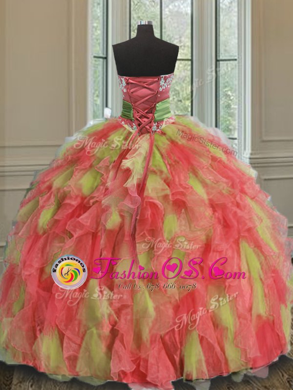 Fitting Multi-color Sleeveless Organza Lace Up Quince Ball Gowns for Military Ball and Sweet 16 and Quinceanera