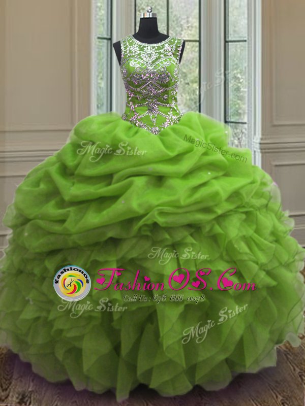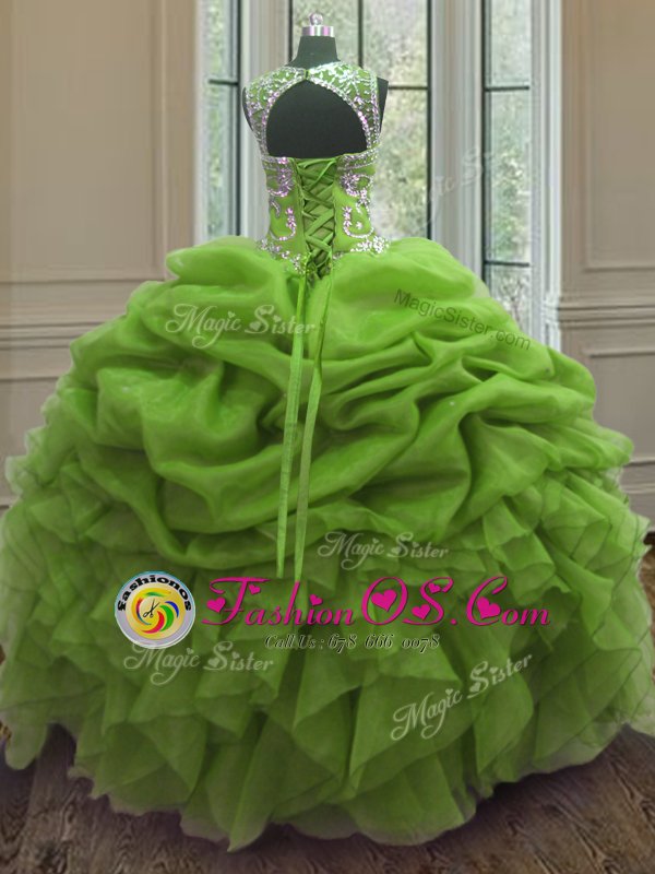 Great Organza Lace Up Scoop Sleeveless Floor Length Ball Gown Prom Dress Beading and Ruffles and Pick Ups
