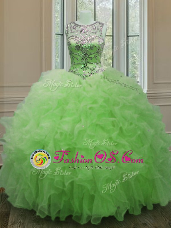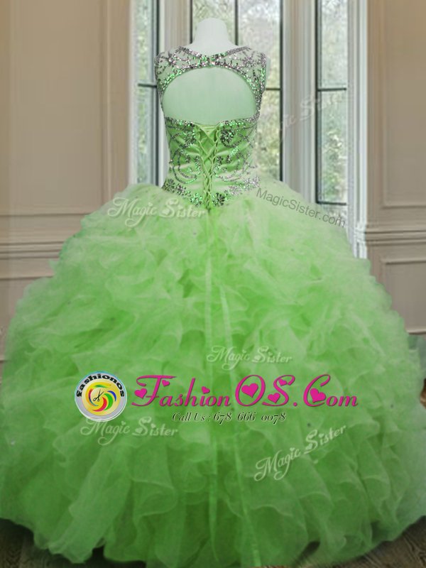 Ball Gowns Organza Scoop Sleeveless Beading and Ruffles Floor Length Lace Up 15 Quinceanera Dress