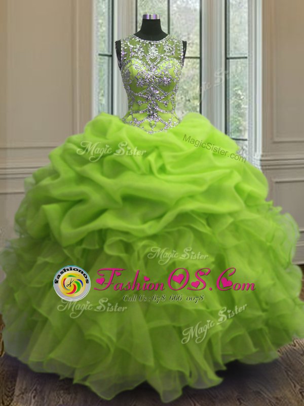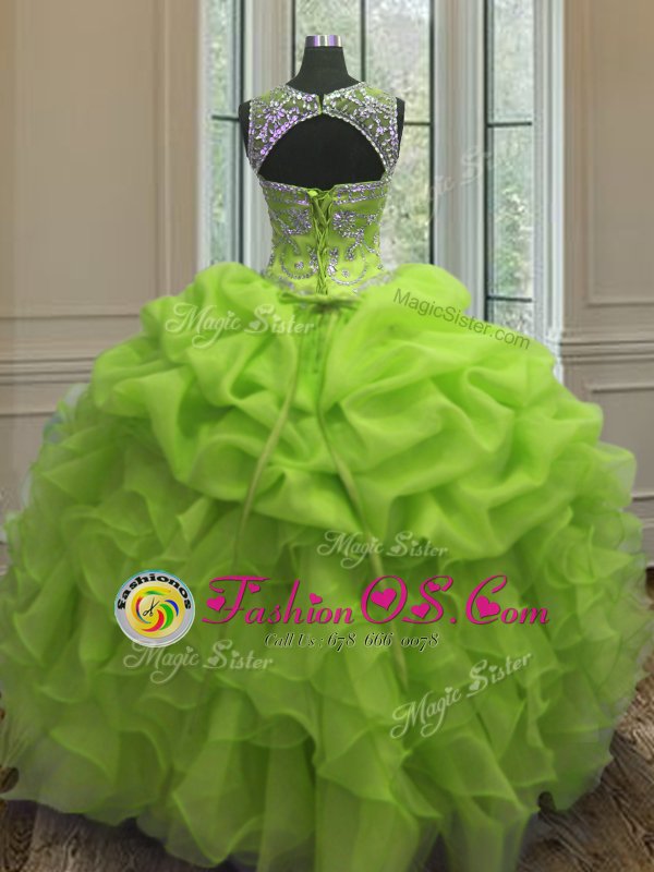 Exquisite Pick Ups Floor Length Quince Ball Gowns Scoop Sleeveless Lace Up