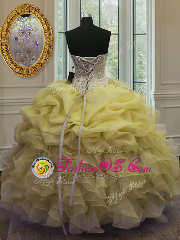 Sophisticated Sleeveless Lace Up Floor Length Beading and Ruffles Sweet 16 Quinceanera Dress